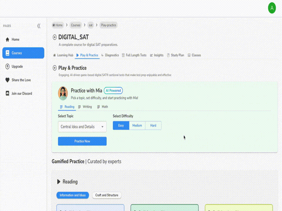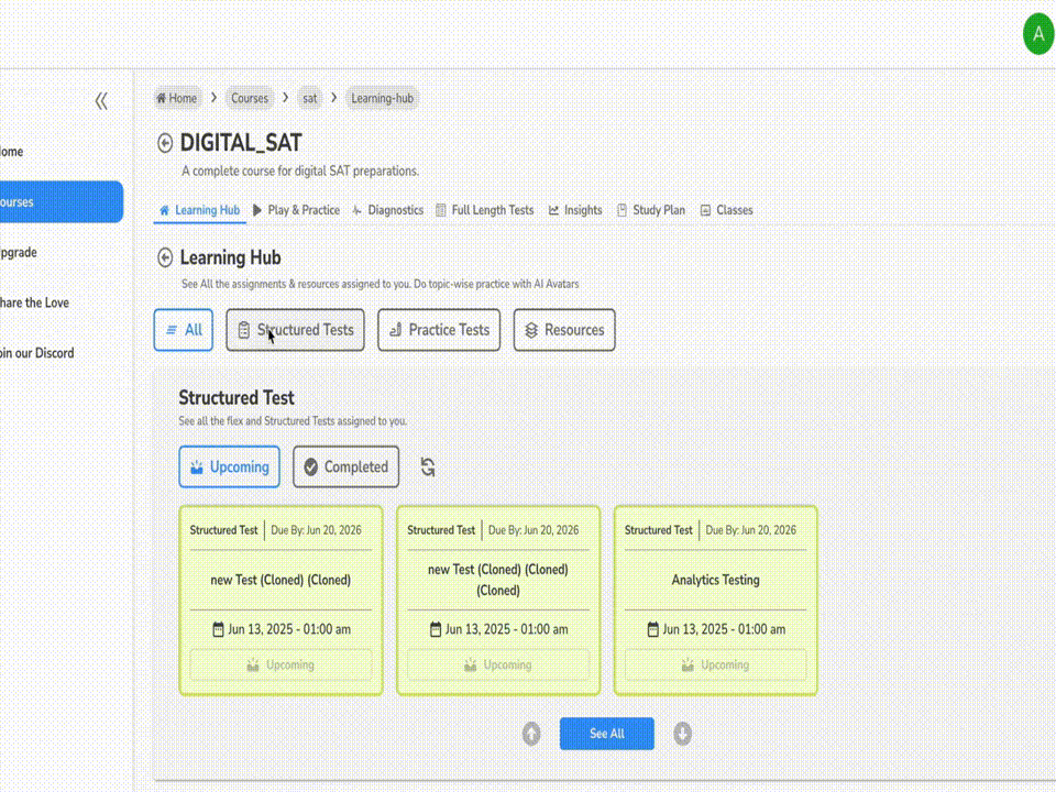 Bring all your SAT prep into one organized space. The Learning Hub gives students easy access to study materials, practice sets, and progress reports in one place, while giving parents a clearer, more structured view of how preparation is moving forward.