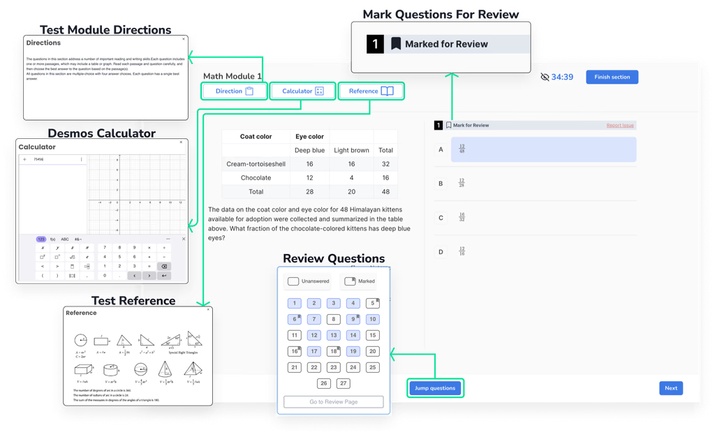 Over 2x the number of questions offered by the College Board. Covers both modules of the Digital SAT, categorized by difficulty for focused practice. The platform adapts to your performance, so youโre never stuck or bored.